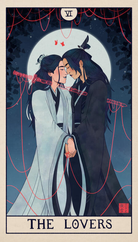 a) The work should include Song Lan and Xiao Xingchen as some kind of couple, and this should be the main ship of the work. They don’t need to be in a relationship actively (pre- or post-relationship focus is fine!). Both characters don’t even need to show up in the same work, as long as it’s about the two of them with at least a vague whiff of attraction implied.